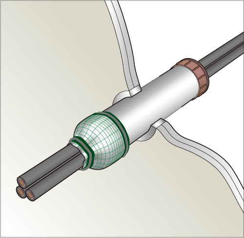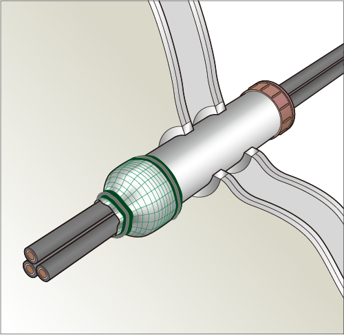 ※1:厚鋼 φ 36mmサイズで外径45.5mm、長さ34.8mmサイズのねじなし(打ち込みタイプ)ブッシングを使用し、貫通配線が少ない必要に応じて IKD-75N をご使用ください。